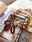 En el centro, un dije de ágata marrón con vetas orgánicas se convierte en el gran protagonista de la pieza, aportando carácter y elegancia.