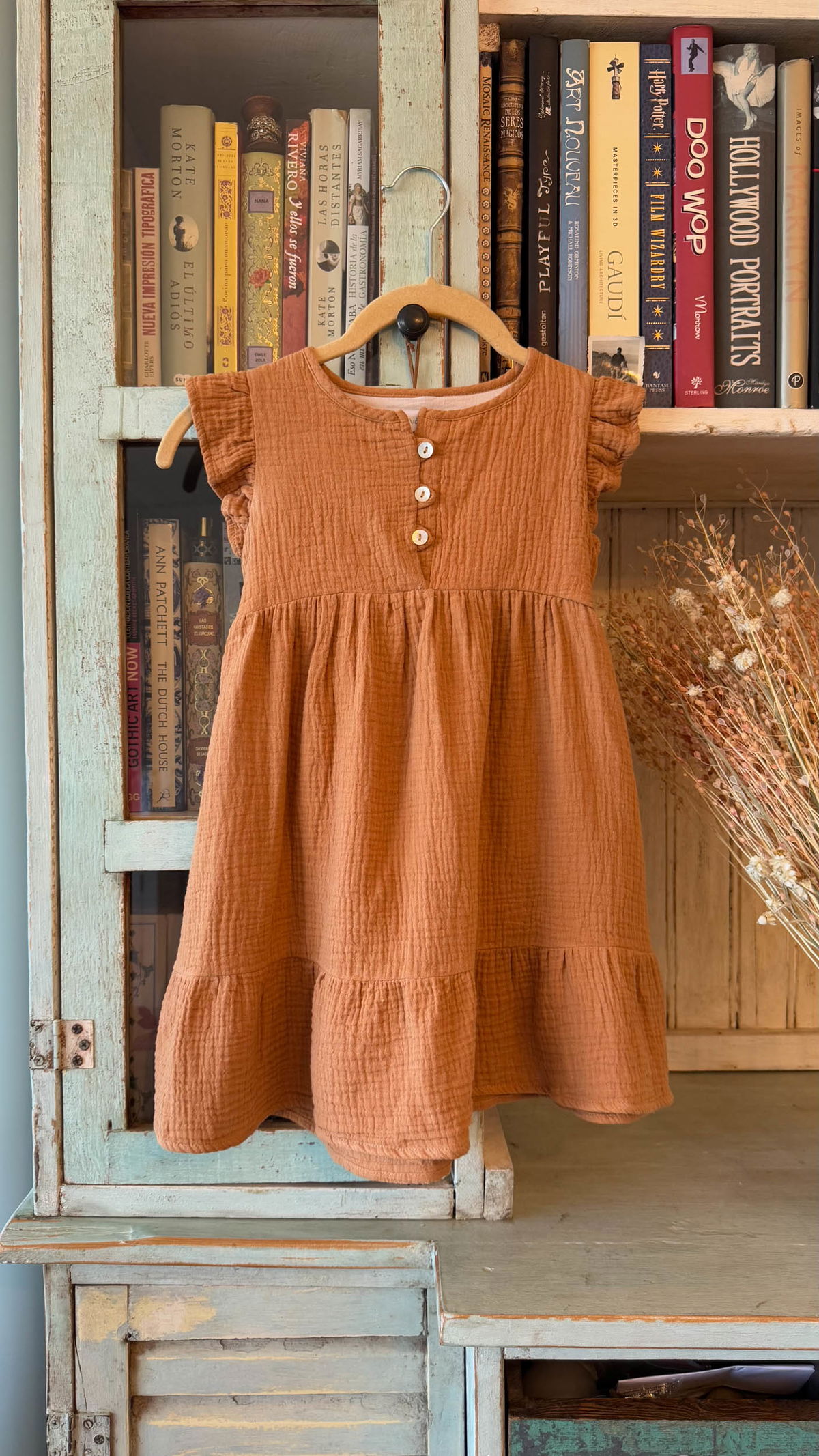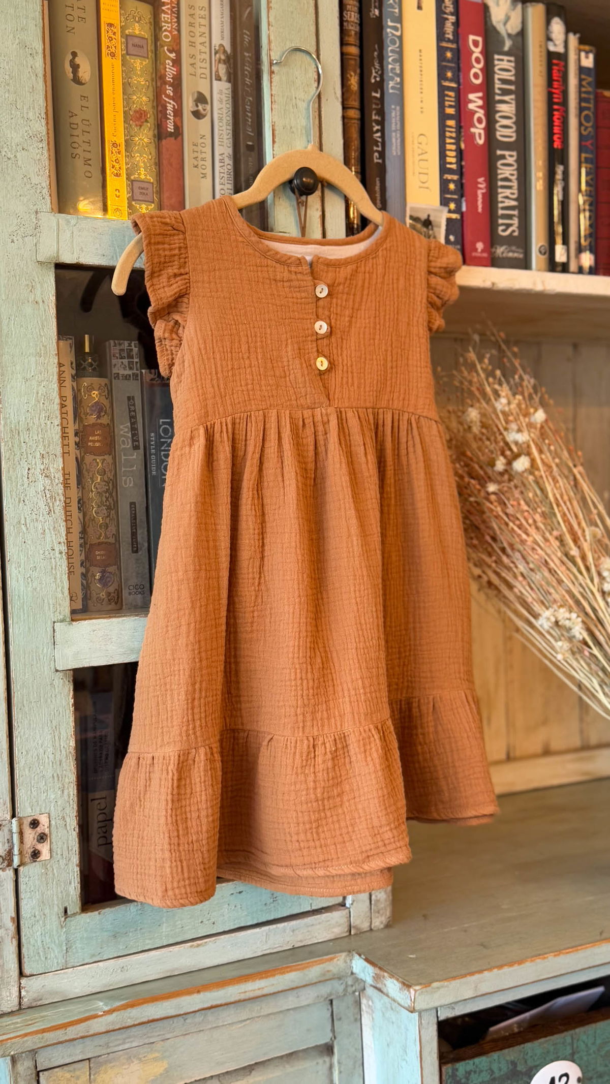 Vestido de niña sencillo y adorable, con un toque rústico y casual.